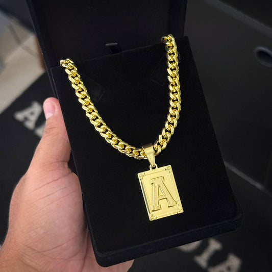 Corrente Cuban 9mm e Pingente Letra Banhado a Ouro 18K