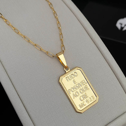 Corrente Cartie 2mm e Pingente Tudo é Possível Banhado a Ouro 18K