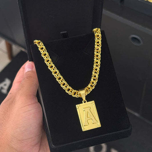 Corrente Friso Duplo 6mm e Pingente Letra Banhado a Ouro 18K