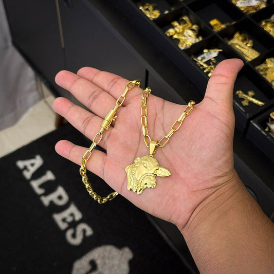 Corrente Meia Cana 6mm e Pingente Boi Nelore Banhado a Ouro 18K