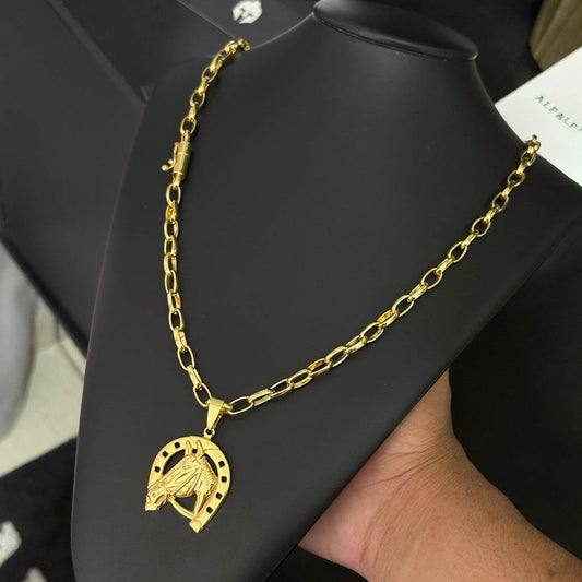 Corrente Meia Cana 6mm e Pingente Cavalo Banhada a Ouro 18K