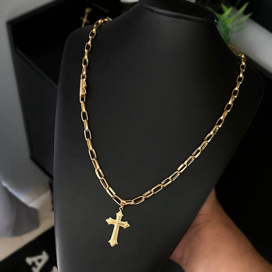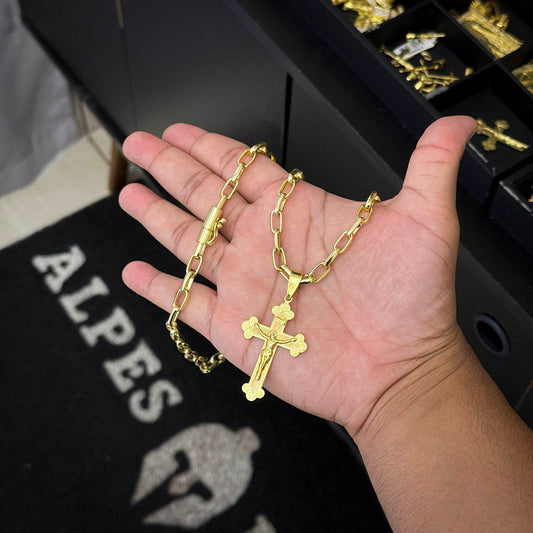 Corrente Meia Cana 6mm e Pingente Crucifixo Banhado a Ouro 18K