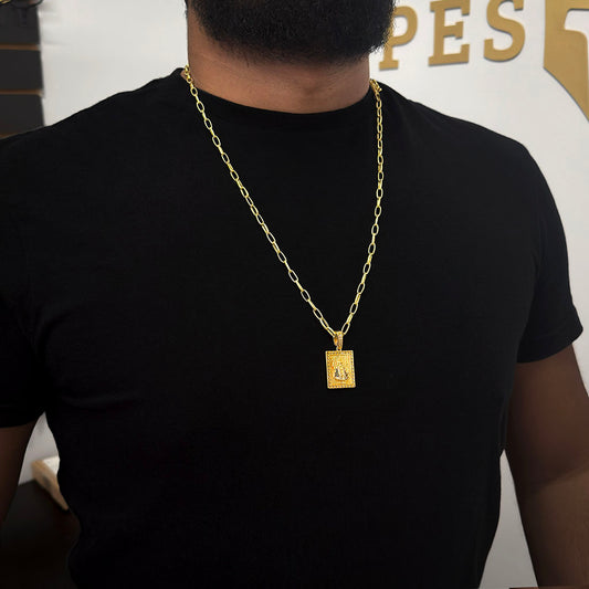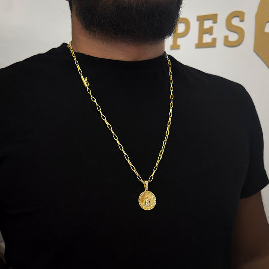 Corrente Meia Cana 4mm e Pingente Face de Cristo Banhado a Ouro 18K