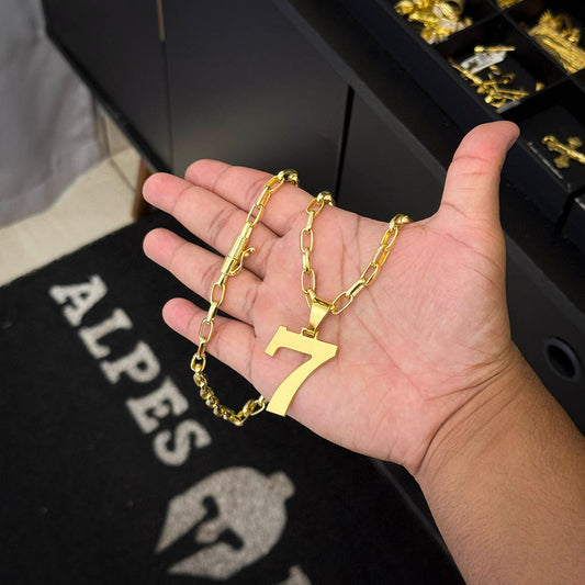 Corrente Meia Cana 6mm e Pingente 7 Banhado a Ouro 18K