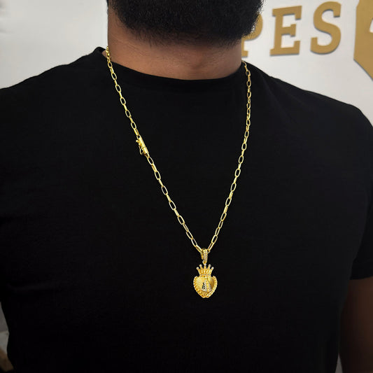 Corrente Meia Cana 4mm e Pingente Coração N. Sra. Aparecida Banhado a Ouro 18K