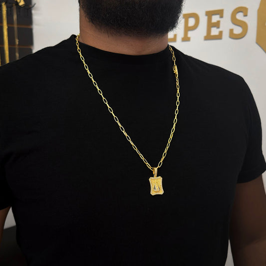 Corrente Meia Cana 4mm e Pingente Placa Rajada Cristo Banhado a Ouro 18K