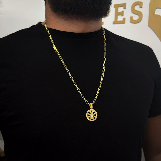 Corrente Meia Cana 6mm e Pingente Crucifixo Oração Pai Nosso Banhado a Ouro 18K