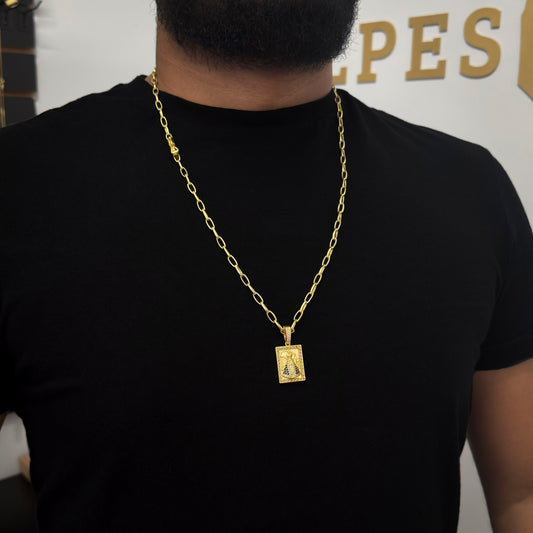 Corrente Meia Cana 4mm e Pingente N. Sra. Aparecida Maciço Banhado a Ouro 18K