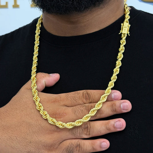 Corrente Meia Cana 6mm Banhada a Ouro 18K