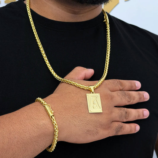 Kit Corrente e Pulseira Peruana 7mm e Pingente Letra Banhado a Ouro 18K