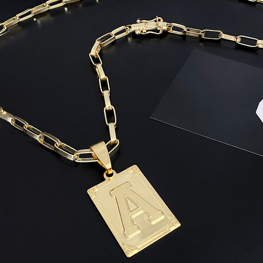 Kit Corrente e Pulseira Elo Alongado 5mm e Pingente Letra Banhado a Ouro 18K