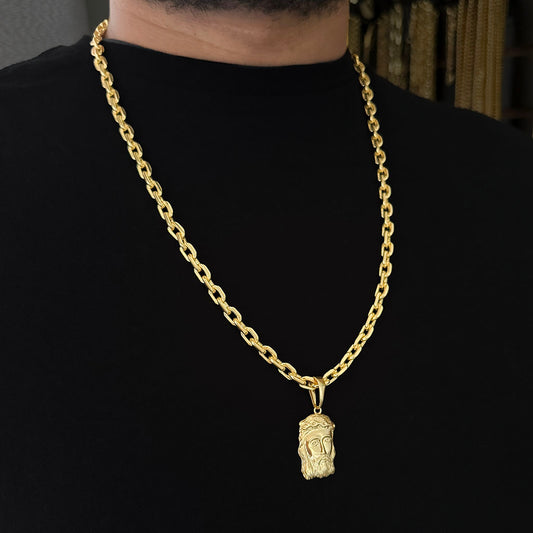 Corrente Cadeado 6mm e Pingente Face de Jesus Banhado a Ouro 18K