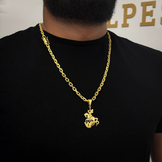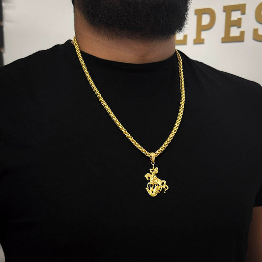 Corrente Peruana 7mm e Pingente São Jorge 3D Banhado a Ouro 18K
