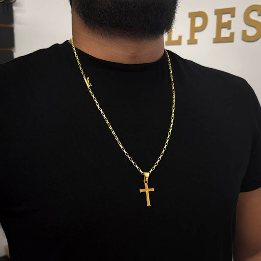 Corrente Tijolinho 4mm e Pingente Cruz Banhada a Ouro 18K