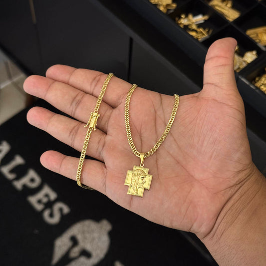 Corrente Cubana 6mm e Pingente Cruz Ponta Banhado a Ouro 18K