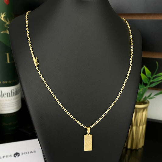 Corrente Cadeado Alongado 3mm e Pingente Placa Crucifixo Banhado a Ouro 18K