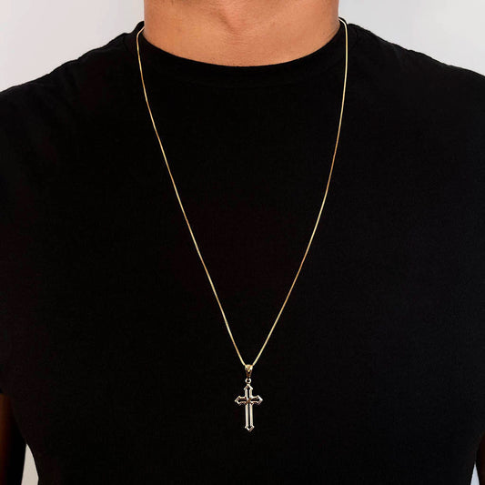 Corrente Veneziana 1mm e Pingente Cruz Vazada Banhado a Ouro 18K