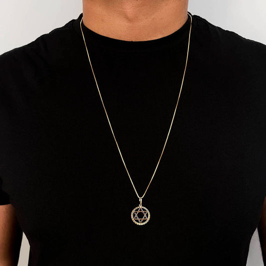 Corrente Veneziana 1mm e Pingente Estrela de Davi Vazado Redondo Banhado a Ouro 18K