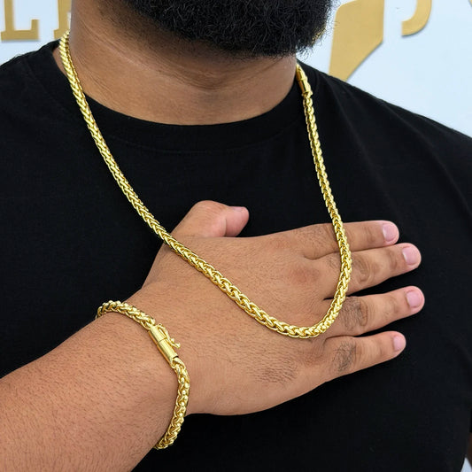 Corrente + Pulseira Peruana 3mm Banhado a Ouro 18K