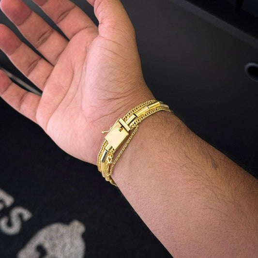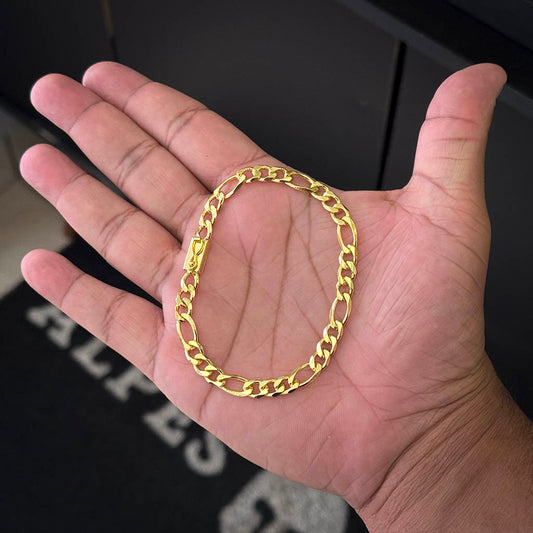 Pulseira Fígaro 3x1 6mm Banhado a Ouro 18K