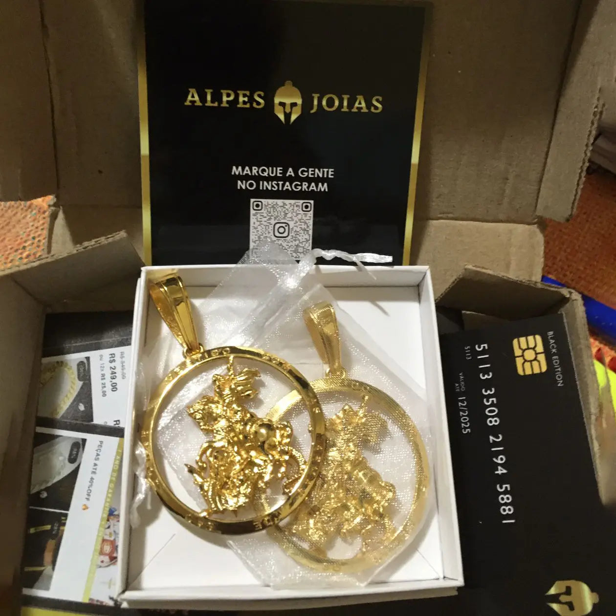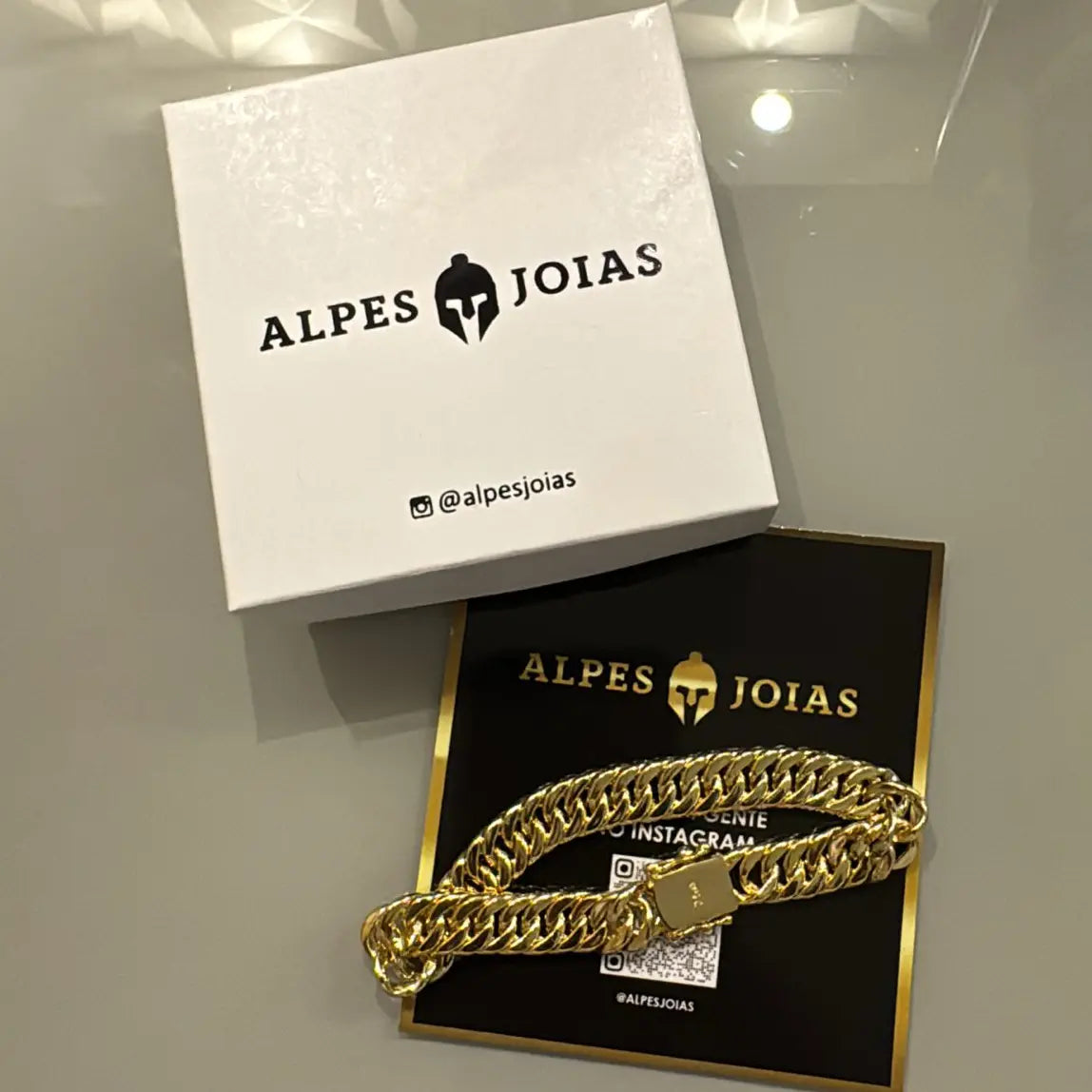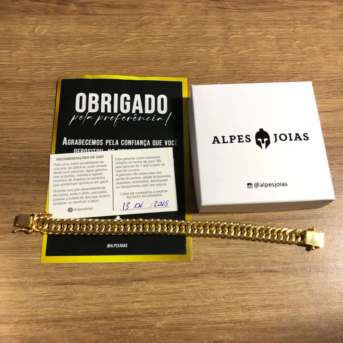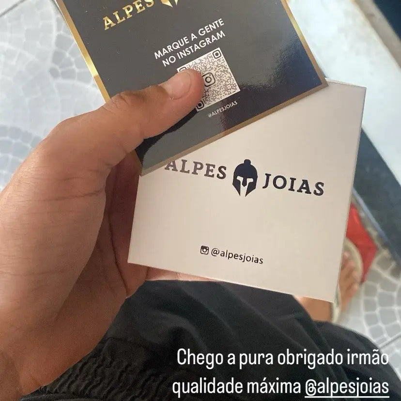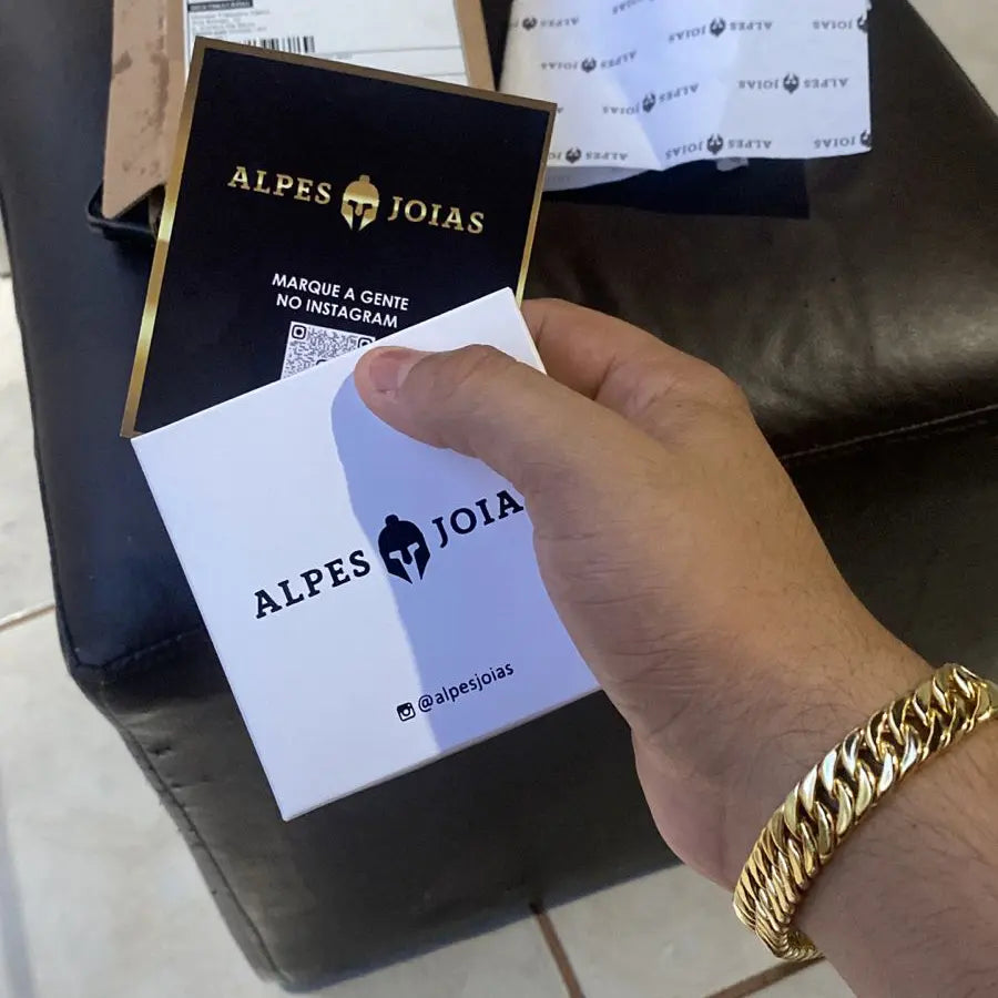 Ao adquirir nossas joias, você recebe sua joia em uma embalagem exclusiva e personalizada Alpes, acompanhada da nota fiscal e do cartão de garantia com os cuidados necessários para maior durabilidade da sua joia.