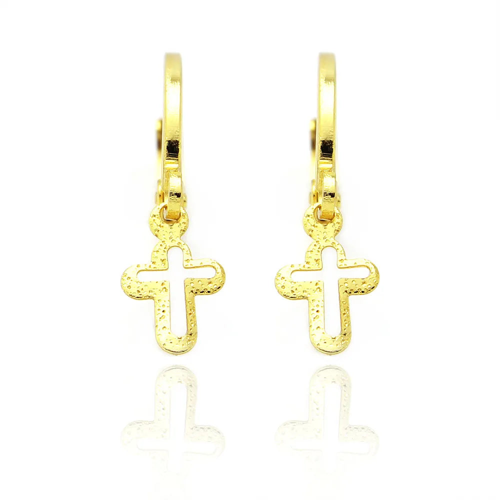 Brinco Argola Cruz Vazada Banhado a Ouro 18K