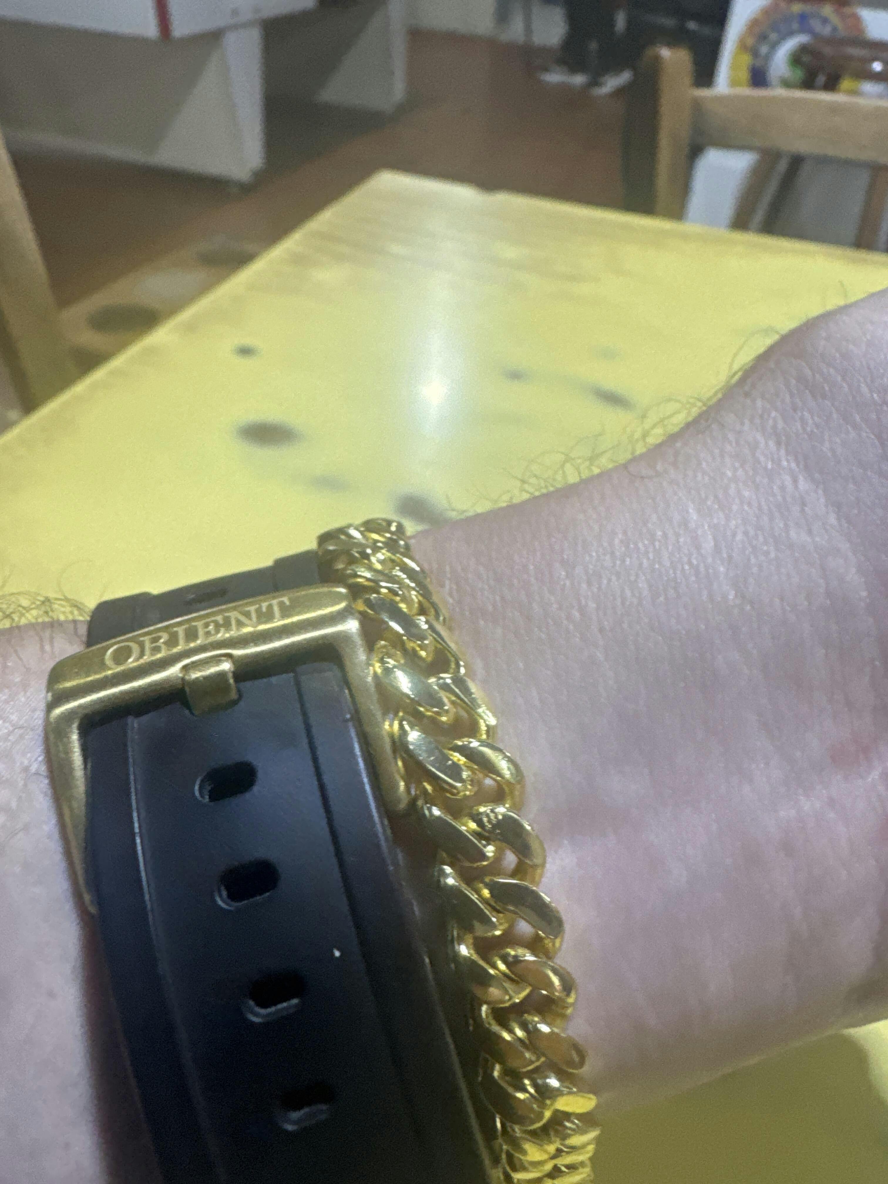 Pulseira linda demais, com a marcação 750k no fecho. curti muito, voltarei a comprar.