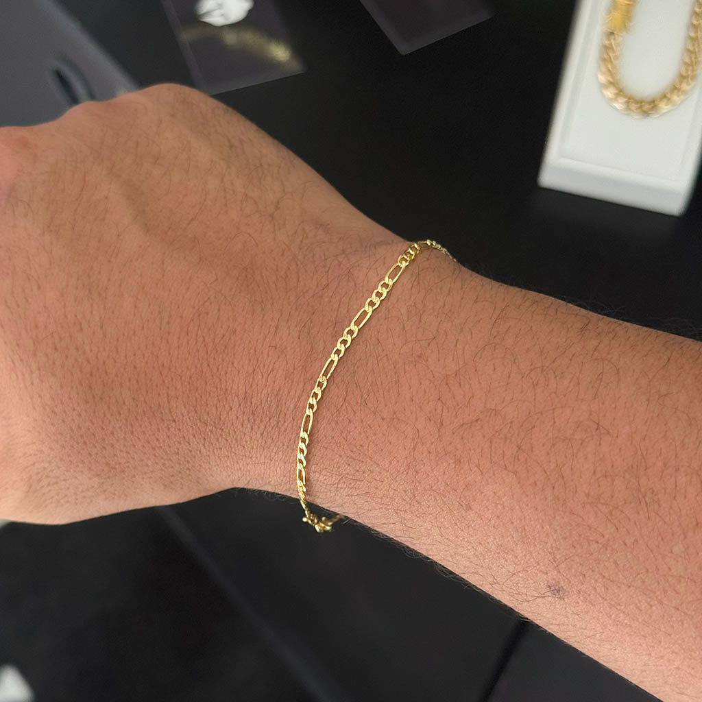 Pulseira Fígaro 3x1 2mm Banhada a Ouro 18K